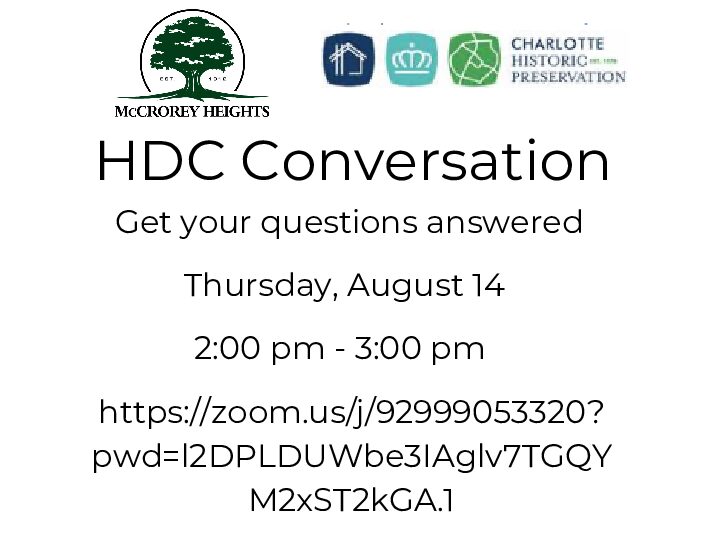 Join us for a neighborhood conversation with Charlotte Historic Preservation Program Manager Kristi Harpst, Thursday, August 12th from 2-3 pm! […]